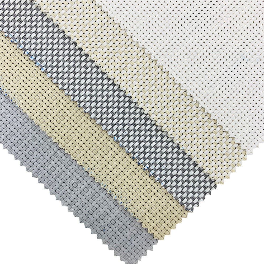The sunscreen fabric is fabric for roller blinds and roller shade window blinds, also called blinds solar fabric, composition are polyester yarn with PVC. custom blinds polyester sunscreen fabric main openness are 0% 1%, 3%, 4%, 5%, 8%, 10%, 12%, 20%, 30%, etc, all common roll up window shades colors are available and polyester PVC fabric color can be customized if you have special window shade color need.